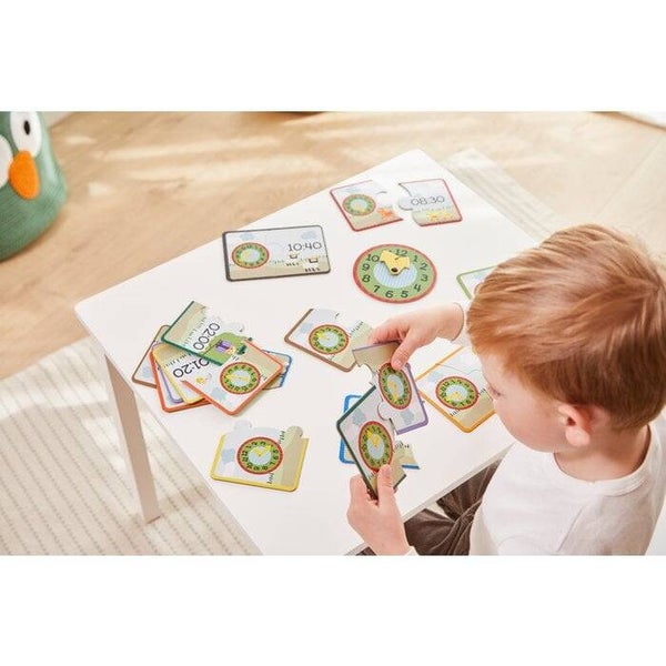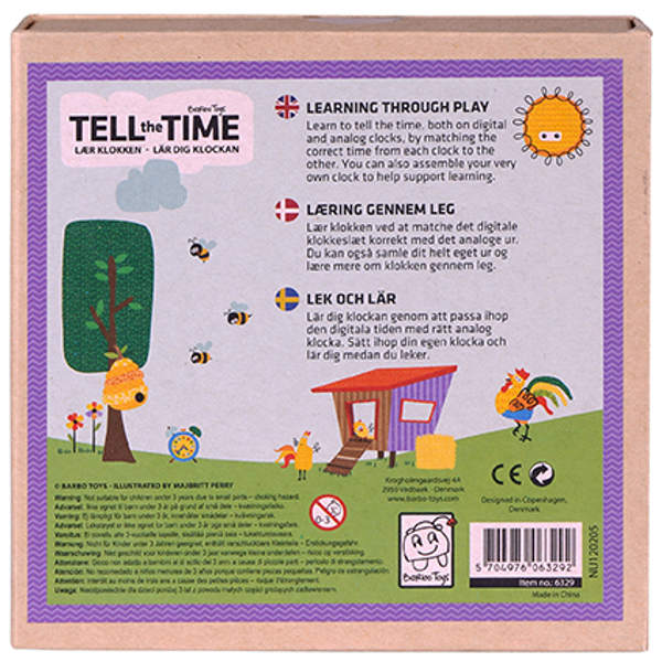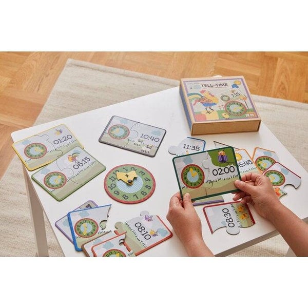 Wil jij je kinderen graag op een leuke en leerzame manier willen leren klokkijken? Dan heb je de perfecte puzzel gevonden! Met 10 mini-puzzels. Samen met de leuke dieren, kun je kinderen de klok leren door de digitale tijd te matchen met de juiste analoge klok. De kinderen kunnen ook proberen om het meegeleverde horloge in stevig karton in elkaar te zetten om zo de tijd en klok beter te begrijpen.